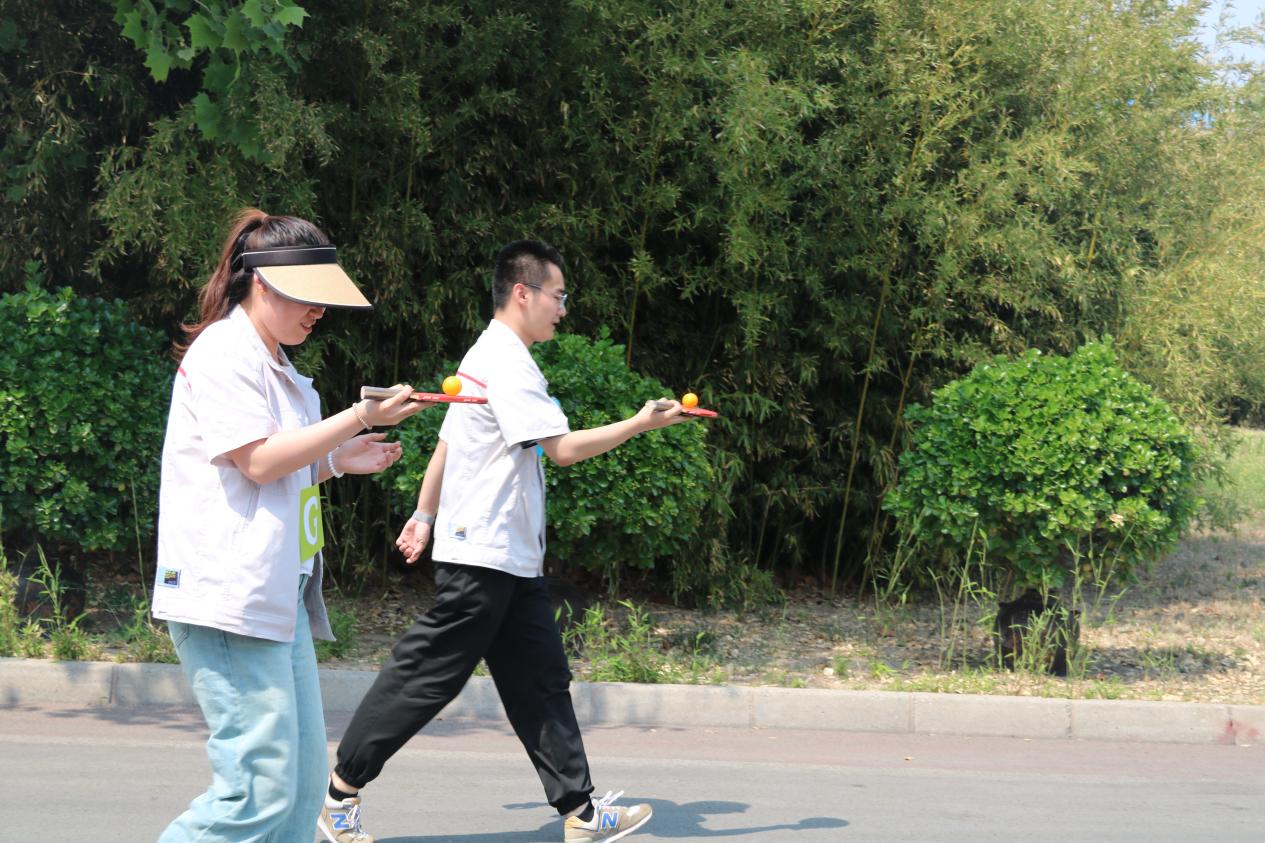 欢快的步伐,快如疾风,随着一声哨响,参赛队员们像离弦的箭一样冲出去,你追我赶,分秒必争。这不仅是每支队伍之间的比拼,更是身体平衡和手眼协调的比拼。
